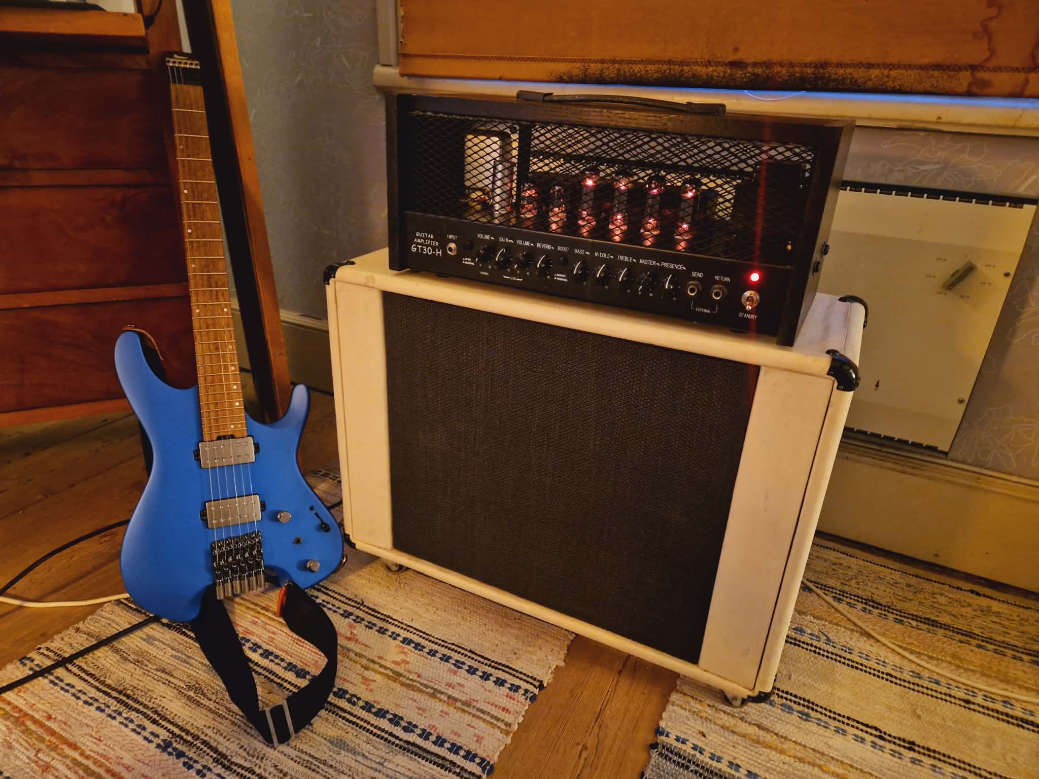 Edit: Även med ovanstående problem så funkar det fint på clean kanal och inget reverb. Låter ruggigt trevligt med en Jensen 15-tummare som följde med. Bra stuns i basen; såpass att man kan få ett ganska vettigt ljud för elbas till och med.